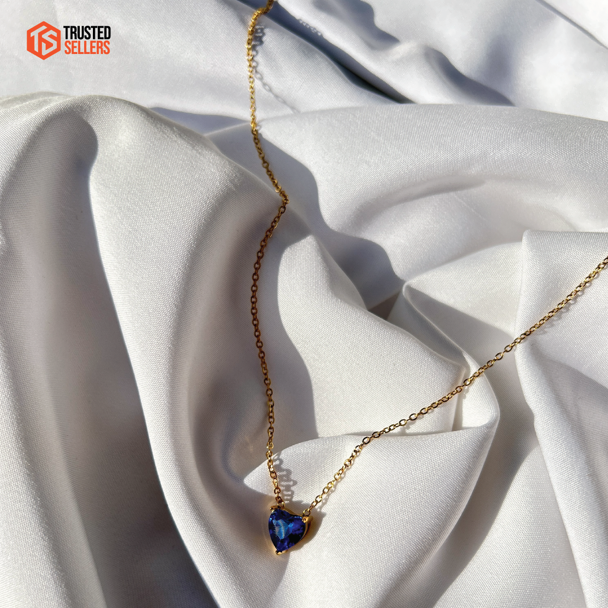 Introducing Julia, a breathtaking necklace from Eraaya, an entity of Trustedsellers. Crafted with precision, this exquisite piece features a delicate gold-plated chain that gracefully holds a blue heart-shaped stone, radiating beauty and sophistication.